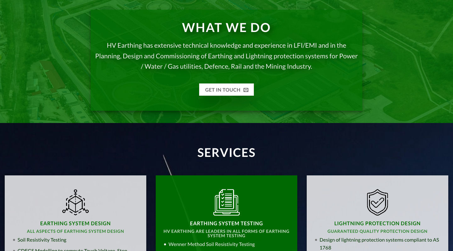 A website built with WordPress to showcase services for HV Earthing and promote its Owner’s professionalism and credentials