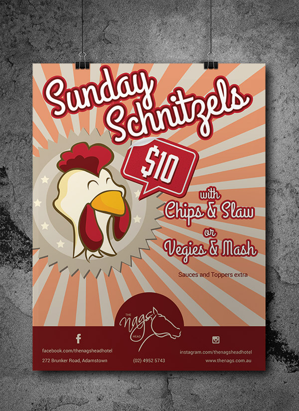 Logo and various designs for collateral for Adamstown pub “Nags Head Hotel”