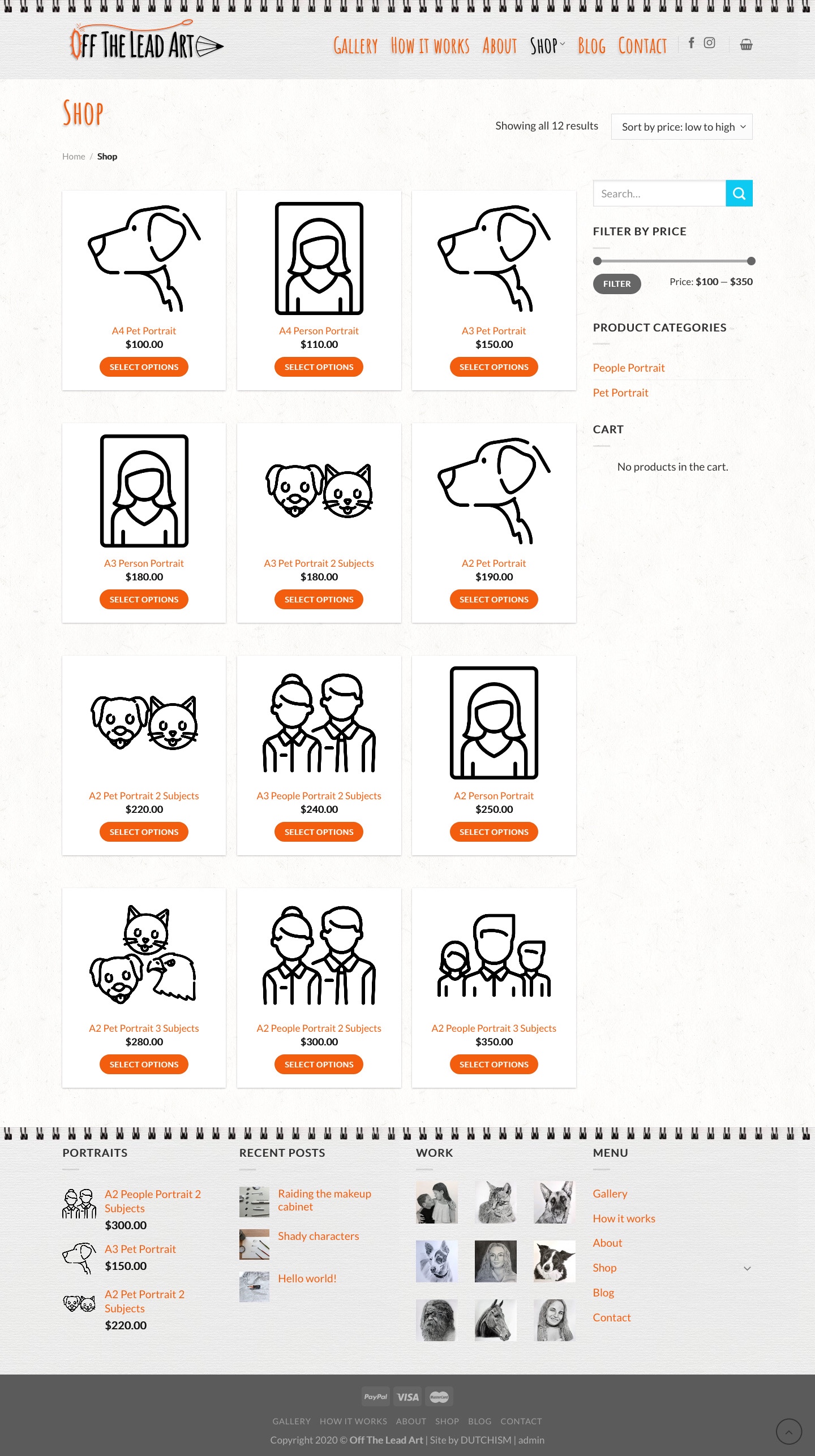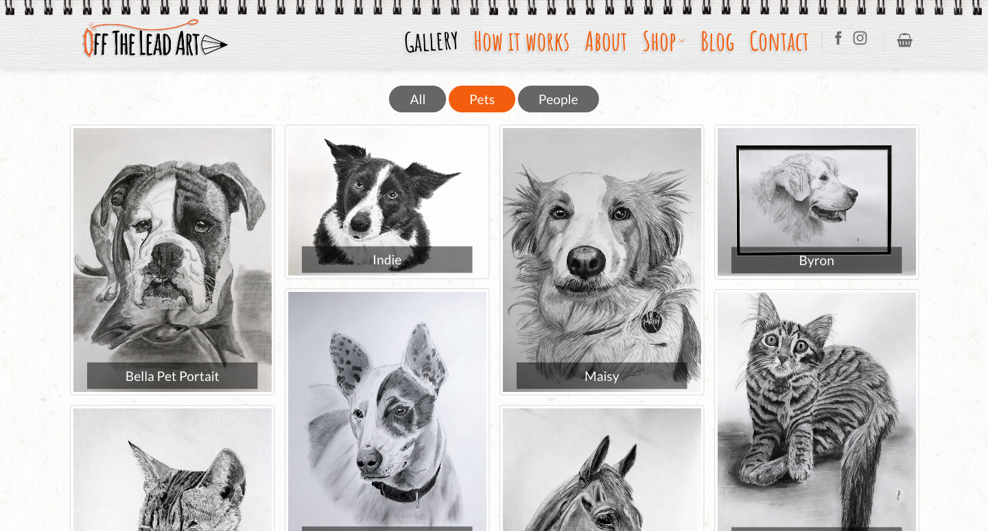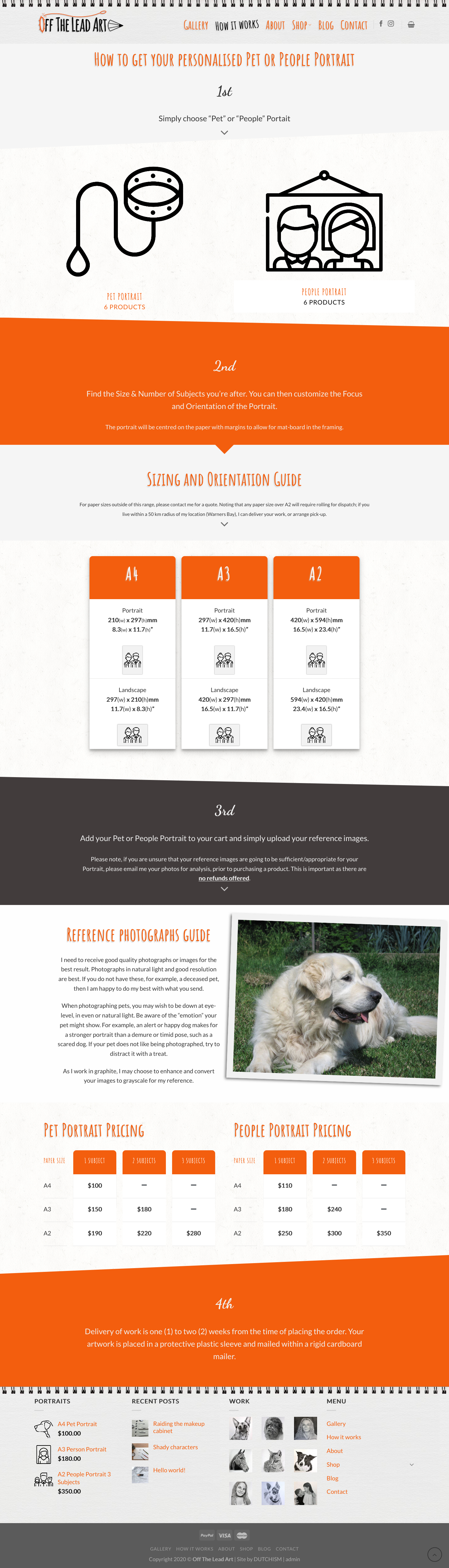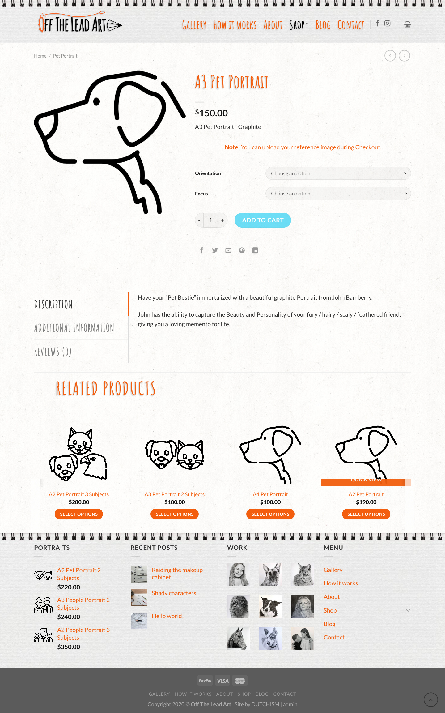 Website: Running on WordPress to showcase the owner’s artwork and skills, and allow potential clients to order their own portraits.