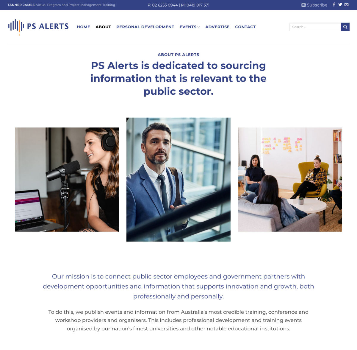 A website built with WordPress to show an aggregation of Public Sector news and events allowing customers to enroll and keep up to date with the industry in there area. It also allows people to advertise.